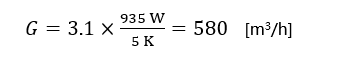 柜壁的傳導(dǎo)熱量我們可以忽略不計(jì),然后假定溫差是5K(°C),前面的公式可以計(jì)算出所需的通風(fēng)量: