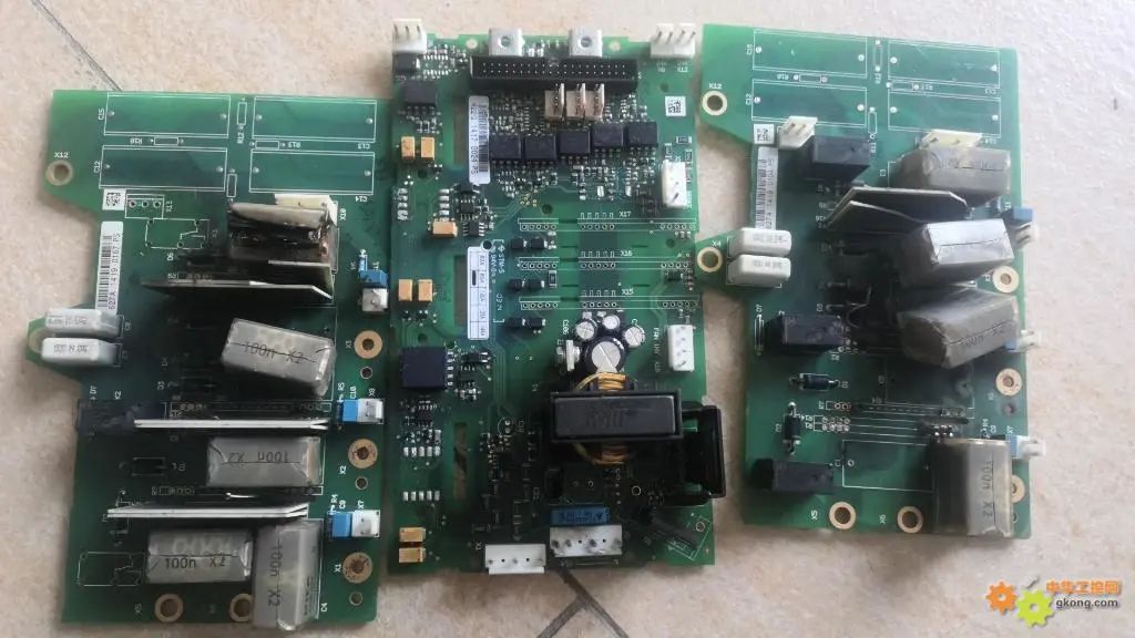 Vacon的變頻器電路設(shè)計(jì)精致,配合采用英飛凌的壓接式IGBT模塊,要是發(fā)生了高壓打火,后果真的很嚴(yán)重。一番拆解下來,情況是這樣:進(jìn)線整流觸發(fā)板夾層炸裂,電源板夾層炸裂,IGBT下橋的觸發(fā)足打火,模塊報(bào)廢,進(jìn)線可控硅整流模塊爆開。幸運(yùn)的是,風(fēng)機(jī)控制板和主板都沒事,主板有光耦隔離,可以理解;風(fēng)機(jī)板和電源板同用一個(gè)母線電源,風(fēng)機(jī)電源居然一點(diǎn)事都沒有。