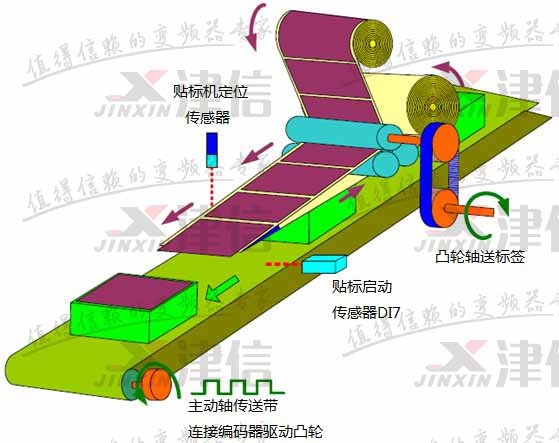 凸輪軸接收來自主軸的脈沖信號(hào),依主軸節(jié)奏進(jìn)行貼標(biāo)動(dòng)作,傳送標(biāo)簽時(shí)需很準(zhǔn)確平穩(wěn),在粘貼標(biāo)簽時(shí),必須要能穩(wěn)定控制運(yùn)行速度與主軸同步,否則標(biāo)簽貼起來會(huì)不平順。