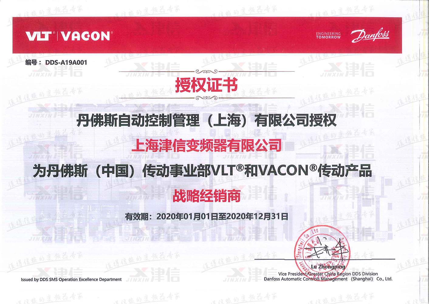 丹佛斯傳動(dòng)戰(zhàn)略經(jīng)銷商上海津信授權(quán)證書